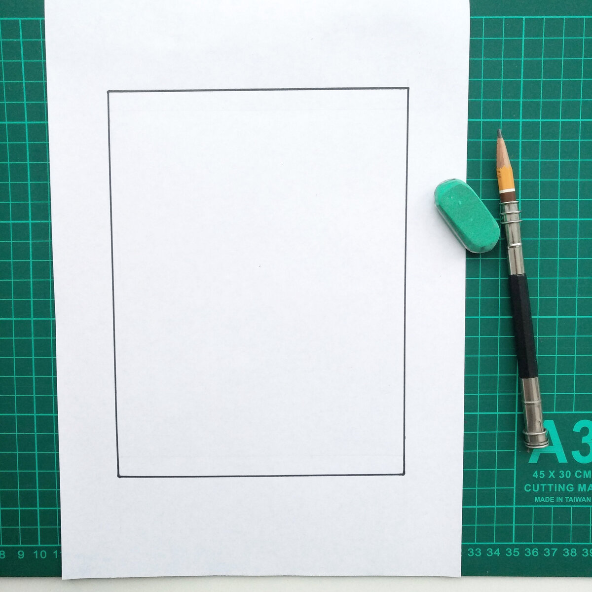 На листе бумаги нарисовать рамку. Можно воспользоваться линейкой, а можно вообще рамку не рисовать. Тогда вашей рамкой будет лист бумаги. Эллипсом обозначить голову. Планируйте расположение правильно.