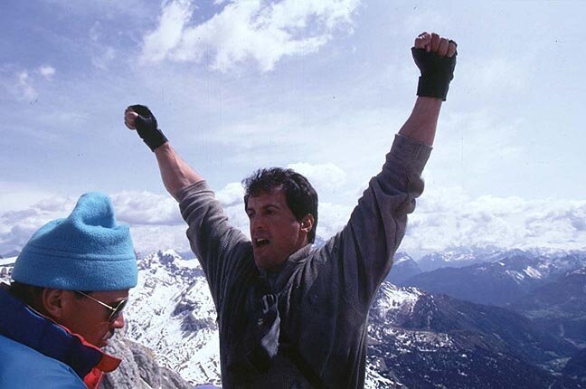 Ренни Харлин закончил работу над "Крепким орешком" и получил предложение снять "Скалолаза". От предложения этого режиссёр некоторое время отказывался, ему казалось, что сценарии этих фильмов слишком похожи. Но вот студия хотела видеть в режиссёрском кресле именно Харлина и убедить его всё же удалось. Не в восторге от сценария был и Сильвестр Сталлоне. Мотивация актёра заключалась в собственном страхе высоты, от которого Сталлоне планировал избавиться по ходу съёмок "Скалолаза". По словам самого Сильвестра, цель была достигнута. На съёмках, Ренни Харлин лично проверял страховочное оборудование. Только тогда, когда всё было проверено и протестировано, режиссёр начинал съёмку. В титрах к фильму есть пояснение, касающееся поломки альпинистского снаряжения в начале фильма. В титрах сказано, что сделано это всё лишь для зрелищности, а на самом деле, такого с оборудованием произойти не могло. Но такое предупреждение фильм от критики не спасло. Альпинисты и все причастные долго ругали "Скалола