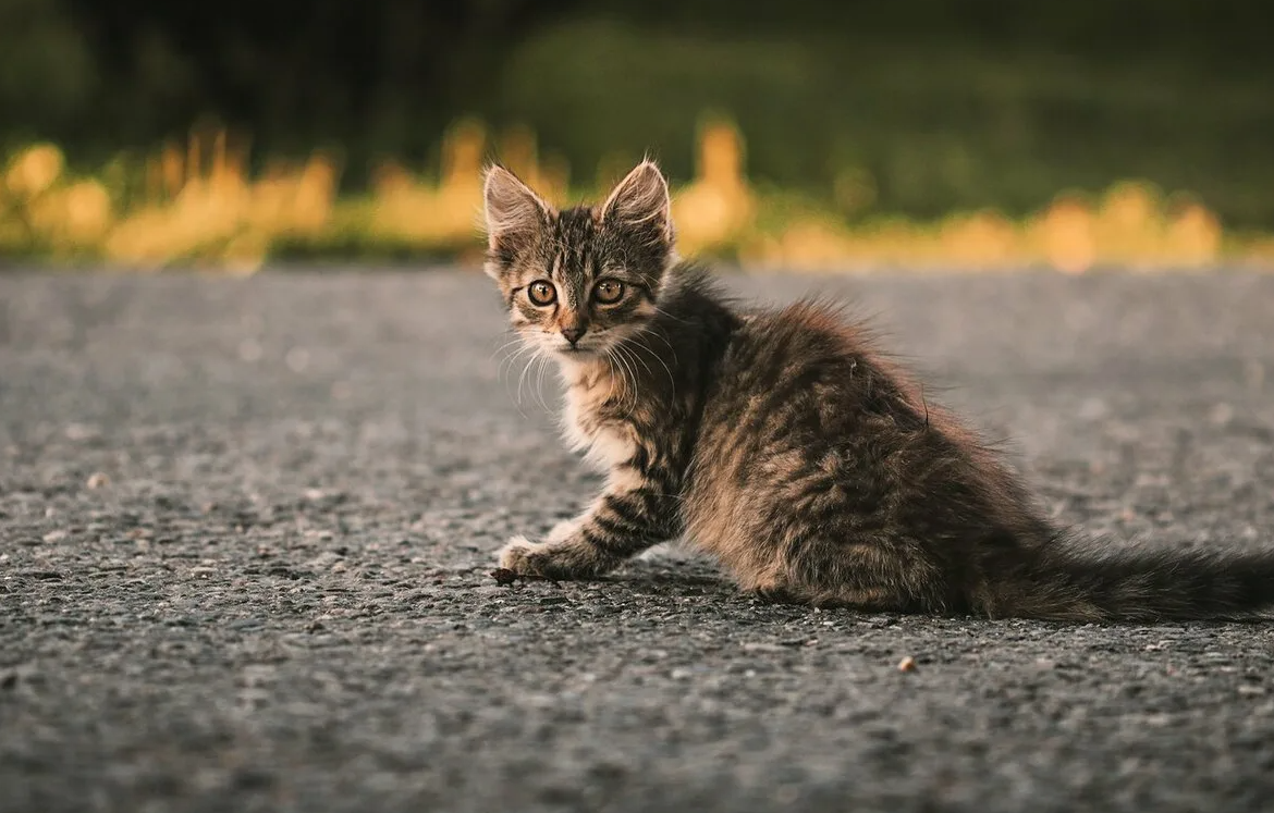 Непонятно как в этот солнечный день маленький котенок оказался на оживленной трассе, и казалось, что его никто не замечал. Котенку повезло, что в этот день был человек который хотел ему помочь.