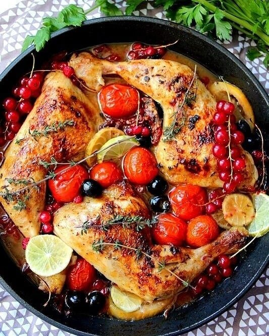 50 гр. Красная смородина Сделайте много деталей на ножках. Чеснок мелко нарезать или пропустить через чесночный пресс, смешать с перцем. Этой смесью смазать ступни, а также посолить и поперчить. Запекать с двух сторон в горячей духовке 5-7 минут. Влейте херес, дайте ему испариться 5-10 минут, пока объем не уменьшится вдвое. Нарезать лимоны толстыми тонкими ломтиками. Сушеные помидоры в жестяных банках. Все овощи, ягоды выложить в кастрюлю с мясом, залить мясом, намазать все тимьяном и запекать при 185 градусах 45 минут.