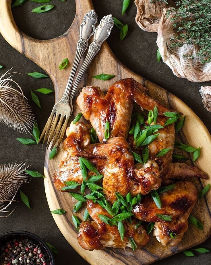 Зеленый лук на стол Для маринада смешайте все ингредиенты в миске, добавьте вымытые и высушенные крылышки, хорошо перемешайте и поставьте в холодильник на 24 часа.