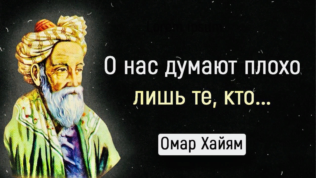 Имя Омар Хайям в сегодняшнем мире уже пожалуй стало нарицательным, поскольку практически каждый человек хотя бы раз в жизни слышал о нём… Его стихи и афоризмы всегда были и продолжают быть способными чтобы достучаться до сердца даже самого циничного и серьезного человека. Это именно так, потому что в 4 строках мастера содержится столько глубины, мудрости и силы, что просто диву даёшься! Предлагаю нам с вами прочесть 10 самых выдающихся цитат философа, чтобы осознать их или вовремя применить в споре или беседе! 1. Молчанье – щит от многих бед А болтовня всегда во вред Язык у человека мал, А сколько жизней он сломал! 2. Не верь тому, кто говорит красиво – в его словах всегда игра Поверь тому, кто молчаливо творит красивые дела 3. Красивым быть – не значит им родиться,