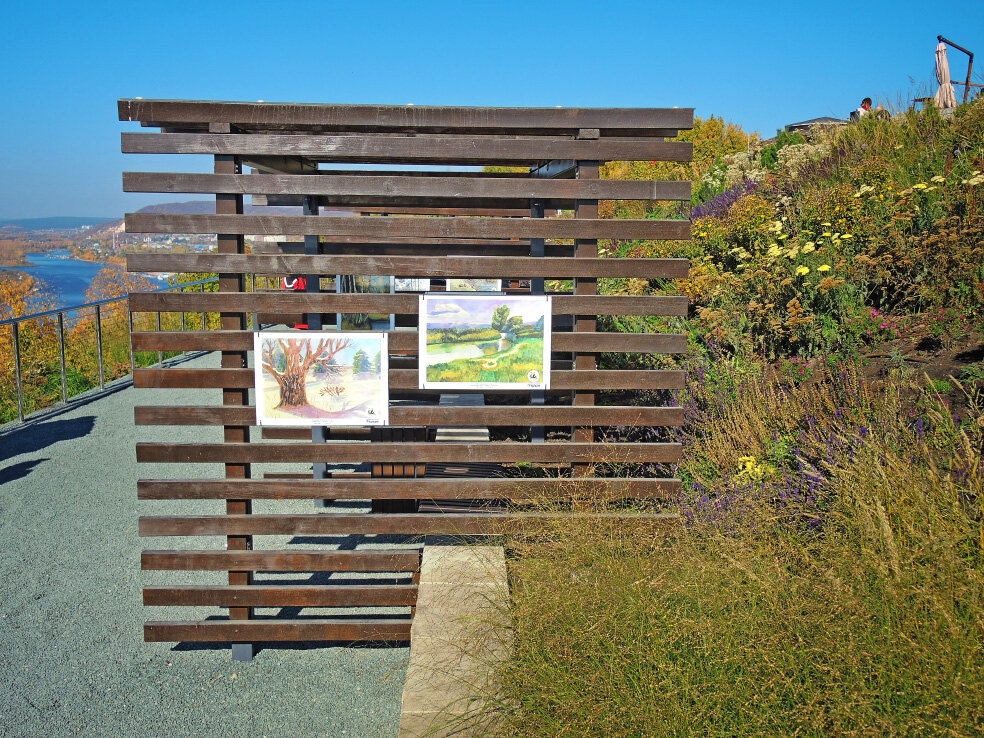 Летом 2021 года Министерство лесного хозяйства, охраны окружающей среды и природопользования Самарской области проводило конкурс детского рисунка «Самарская область - зелёное сердце России». Участникам было предложено показать красоту природы Самарской области. Часть работ победителей этого конкурса можно было увидеть на смотровой площадке в посёлке Управленческий, которую обычно называют вертолётной площадкой. Лично меня, кроме общего довольно высокого уровня рисунков, порадовало, что среди победителей есть дети не только из Самары, но и из других городов области. Подписи не дублирую, они вроде бы читаются. Подобные выставки за последние несколько лет стали традиционными в Самаре. Некоторые я уже показывал. До других руки пока не дошли. В 2020 году была даже сделана серия открыток с видовыми рисунками города. Эти открытки разносили по почтовым ящикам в качестве подарка-поздравления с Днём города. Рассказ об интересных местах и событиях в Самаре продолжу чуть позже. Если не хотите проп
