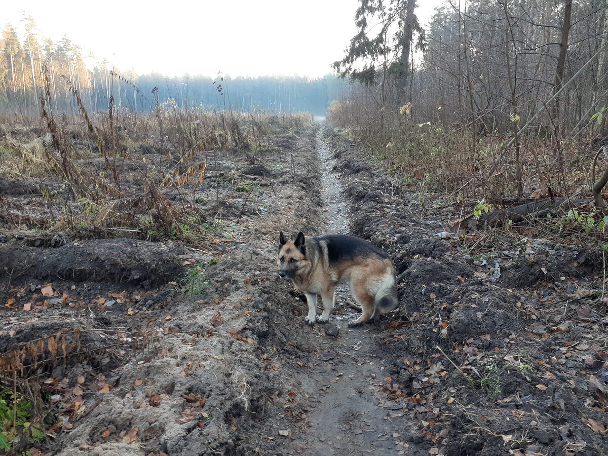 Пошли утром с собакой Кирой гулять. Решили навестить вырубленный участок леса. Санитарная рубка на этом месте была еще в апреле. Летом все заросло травой и кустарниками. Было столько малины!