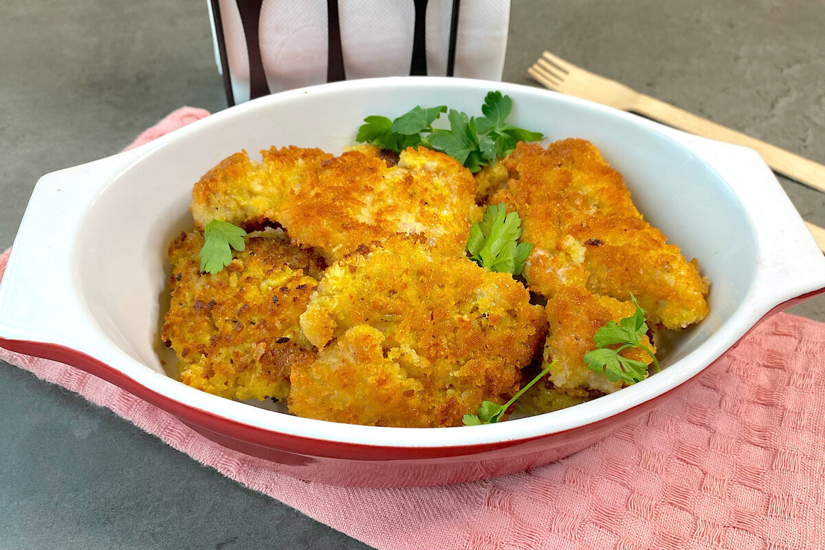 Здравствуйте, дорогие читатели! В моей семье все любят курицу. Но это блюдо любят особенно, только готовлю его редко, так как калории тут зашкаливают 😉. Но, отказаться от такой еды очень сложно, курочка получается сочной внутри и с хрустящей корочкой снаружи - безумно вкусно. Можно с гарниром есть, но мы любим просто с соусом, к примеру томатным или чесночным. Советую подобную пищу есть со свежими овощами и зеленью. У меня было филе бедра, но можно взять грудку. Итак, для начала разрезала мясо на небольшие части. Если желаете, делайте большие отбивные, это уже как вам нравится. Сверху прикрыла пищевым пакетом и слегка отбила кулинарным молотком. Таким образом молоток остался чистым, а мясо не разлетелось по всей кухне. Сложила отбитое филе в миску, добавила специи, посолила, поперчила и помяла руками, чтобы все специи равномерно распределились. Добавила майонез (можно сметану), вбила яйцо и перемешала. В пакет насыпала панировочные сухари и выложила кусочки мяса. Зажала рукой край