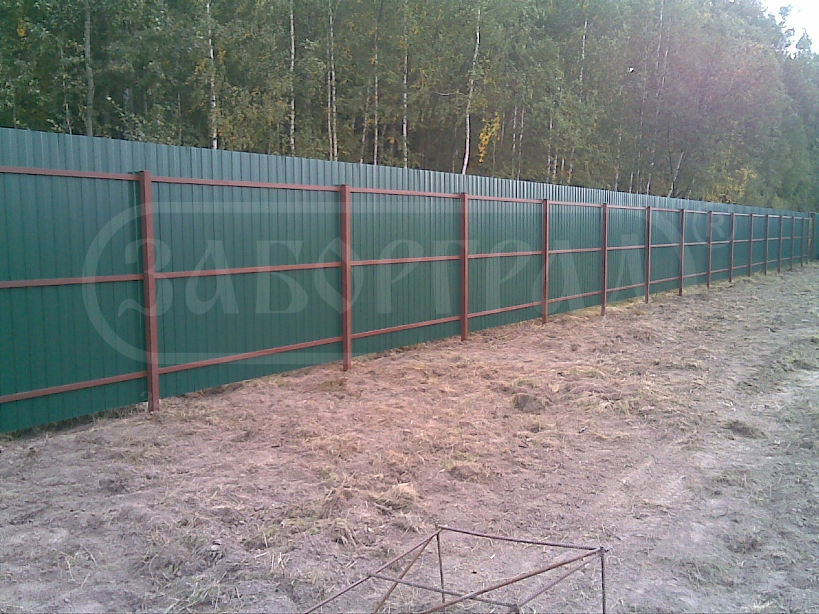 4. Для того, чтобы подсчитать количество листов, необходимых для монтажа, нужно совершить следующие действия. Лист профнастила имеет стандартную ширину 1200 мм, но из-за того, что листы монтируются внахлест, рабочая ширина уменьшается и составляет 1150 мм. Делим периметр участка 6 соток 98 метров на 1,15 получаем 85 целых листов и еще пару листов нужно взять про запас.