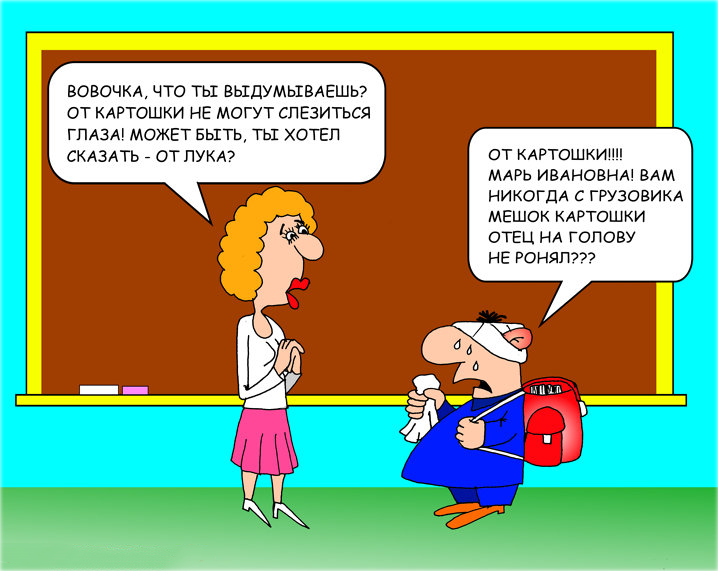 А Вовочка не учил. Стоит и смотрит на товарища. Тот взял книгу, стукнул по парте.
