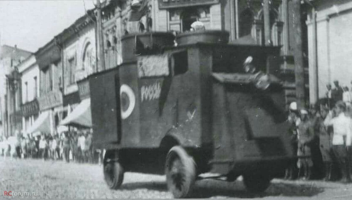 Станция Тихорецкая была основана в 1874-м году на пересечении двух транспортных магистралей Ростов-на-Дону - Петровск-Порт (Махачкала) и Царицын-Екатеринодар. В 1899-м году на станции для обслуживания все возрастающего транспортного потока были созданы крупные паровозоремонтные мастерские. Располагаясь прямо в центре области Войска Донского, не удивительно, что жители станции, будучи в основной своей массе классическими представителями квалифицированного рабочего класса, симпатизировали большевикам, поддержав в конце 1917-го года Советскую власть. Созданное в конце мая псевдогосударство - Кубано-Черноморская советская республика на станции и в соседнем селе держало базу войска Кубано-Черноморской республики, которое в казачьем окружении не долго просуществовало. Станцию Тихорецкая уже в июле 1918-го года захватила Добровольческая армия в ходе наступления на Царицын. И мастерские стали работать уже в интересах ВСЮР: ремонтировались поезда и бронеплощадки. Уже осенью 1918-го года в паровозоремонтных мастерских был забронирован американский грузовик FWD.