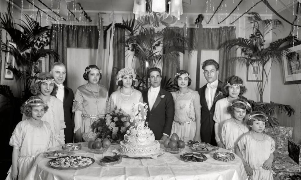 – накануне брачного сочетания, приглашается в дом жениха мальчик лет шести или семи, который укладывает вещи в нарочно для того купленный ларчик, который жених тем же вечером относит в подарок невесте; а именно – башмаки, опахало, серьги, пряжки, белила, румяна, перчатки и проч. Во времена пребывания жениха у невесты, сидит он с нею на мохнатой шубе в знак будущей благополучной жизни. На другой день перед поездом в церковь тот же мальчик или другой с невестиной стороны должен невесту обуть в ее новые башмаки и продает ее косу за гривну или за рубль, то есть, что дадут. Невеста в знак ее покорности повинна в первый раз разуть жениха; причем жених кладет в сапоги в правый деньги а в левый плеть; и когда невеста сперва за левую ногу примется, то жених, вынув плеть, ударяет невесту, а если за правую, то отдает ей положенные деньги. Новобрачных же не кладут никогда спать в жилой хоромине, но в пустой и не топленной, как бы стелено не было, и некоторые для того нарочно стоят покои и на потол