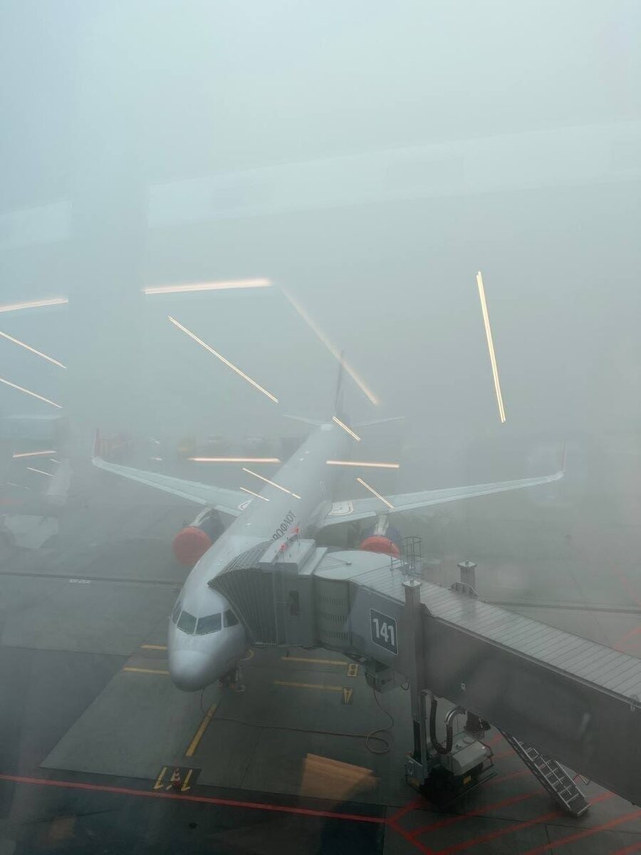 Из-за погодных условий в московских аэропортах задержаны и отменены почти 150 рейсов. Говорили, что мгла уйдет из города к 11:00.