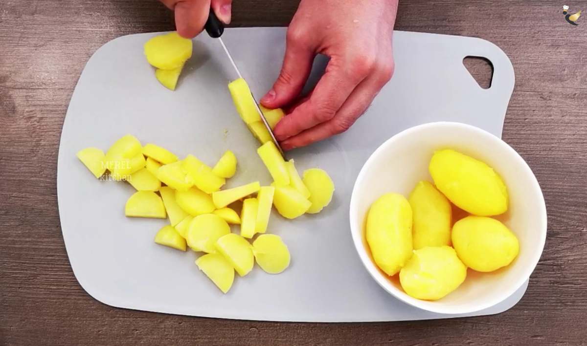 Всегда делаю эти салаты для своих гостей, им очень нравится и всегда довольны, а главное готовится все очень просто и быстро и продукты в них самые простые, без всяких изысков. Салаты называются "немецкие ", потому что рецепты взяты из кулинарной книги народов мира и в Германии эти салаты очень популярны. Сегодня поделюсь с вами двумя рецептами, первый салат картофельный, он очень вкусный, сытный и идеален тем, что все продукты для него всегда есть под рукой. Для приготовления салата первым делом нужен будет отварной картофель 7 небольших клубней. Картофель нужно порезать на крупные дольки и переложить в салатник. Затем беру жареные сосиски или колбаски три штуки и нарезаем кружочками. По желанию сосиски можно заменить беконом или колбасой. Потом беру маринованные огурцы 7-8 штук и нарезаю их кружками. Дальше мелко шинкую пучок зеленого лука и пучок петрушки и делаю заправку для салата: Все ингредиенты заправки перемешиваю и добавляю в салат. Перед подачей нарезаю вареные яйцам