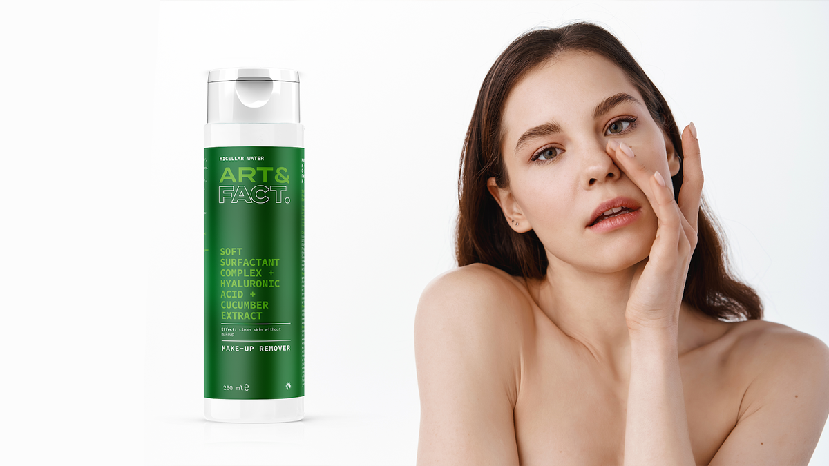 Снятие макияжа, особенно вечернего, часто превращается в сложную процедуру. Тушь оставляет следы и разводы под ресничным контуром, а тон – пленку и масляный след. Приходится использовать несколько ватных дисков, чтобы удалить всю косметику. Но все это уходит в прошлое с новой мицеллярной водой от Art&Fact. Как действуют компоненты Мицеллы – это двухслойные частицы поверхностно-активных веществ, которые как магнит притягивают к себе загрязнения и макияж. Они бережно воздействуют на кожу, но при этом эффективно удаляют загрязнения и остатки косметики. Комплекс мягких ПАВ деликатно очищает лицо, при этом не создает чувство стянутости и не вызывает раздражения чувствительной и нежной кожи глаз. К тому же он не повреждает липидный барьер, а сохраняет естественные защитные механизмы. Плюс увлажняет кожу, успокаивает ее и смягчает. Гиалуроновая кислота увлажняет кожу и препятствует потере влаги. Благодаря этому лицо становится ухоженным, красивым и сохраняет молодость на долгое время. Экстрак