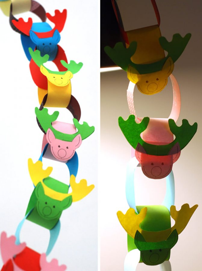 Ни одно украшение новогодней красавицы не может обойтись без использования праздничных гирлянд, можно даже из бумаги.