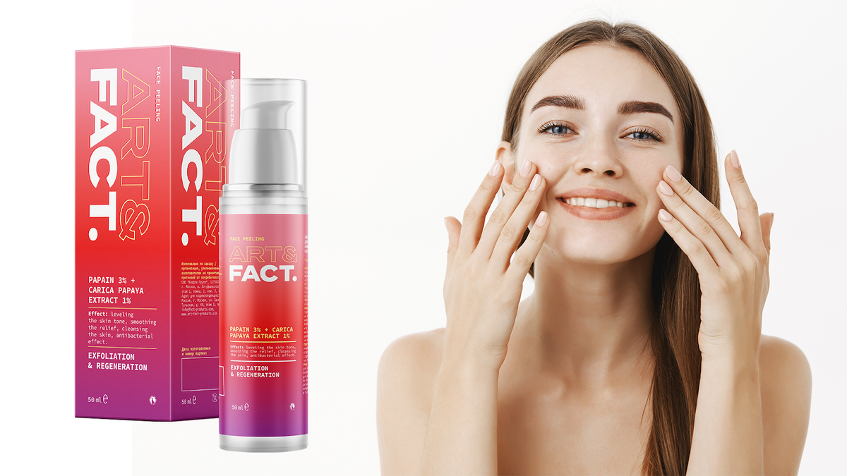 Косметологи все чаще говорят, что за лицом необходим хоть и тщательный, но все-таки бережный и деликатный уход. Особенно это актуально для очищения, ведь агрессивное воздействие абразивных скрабов повреждает кожу и нарушает ее целостность. Результат: разрушение липидного слоя и преждевременное старение. Чтобы избежать подобных проблем, бренд Art&Fact разработал бережные энзимные пилинги. Один из них – пилинг с папаином 3% и экстрактом папайи 1%. Какой эффект Благодаря деликатному, но глубокому очищению средство прекрасно удаляет загрязнения и ороговевшие клетки с поверхности лица. При этом липидный слой остается целым, что позитивно сказывается на состоянии кожи. К тому же энзимы идеально подходят для отшелушивания чувствительной кожи, особенно в осенне-зимний период, так как не вызывают раздражений и шелушений. Как действуют компоненты Папаин эффективно очищает поры и защищает от вредных бактерий. А в сочетании с экстрактом папайи мягко очищает поверхность кожи, делает ее сияющей и ро