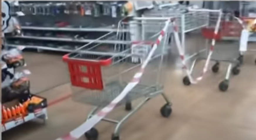 Так в Ульяновской области, в одном из супермаркетов, просто перекрыли доступ к непродовольственным товарам тележками и обвязали специальной лентой.