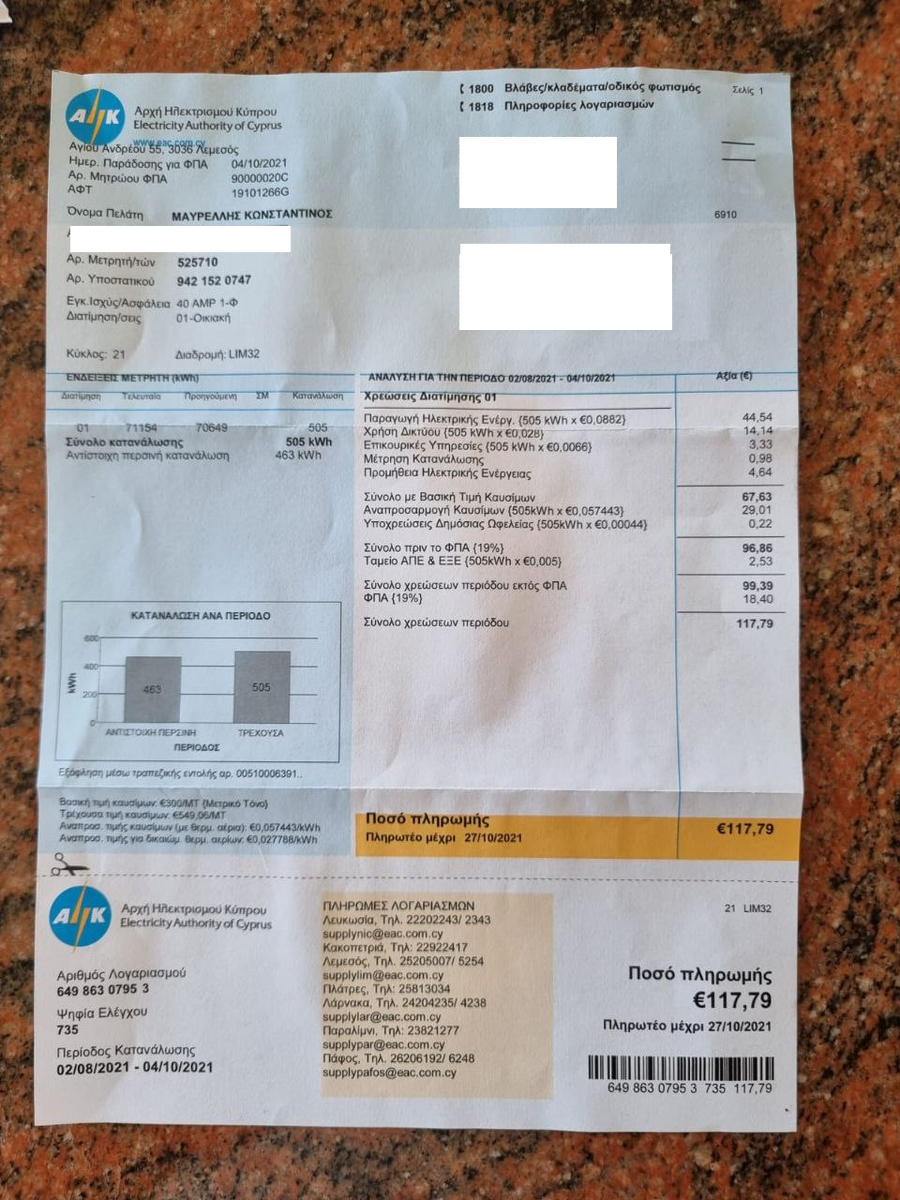 Периодичность счетов на Кипре не каждый месяц, а на воду – раз в три месяца, на электричество – раз в два месяца.