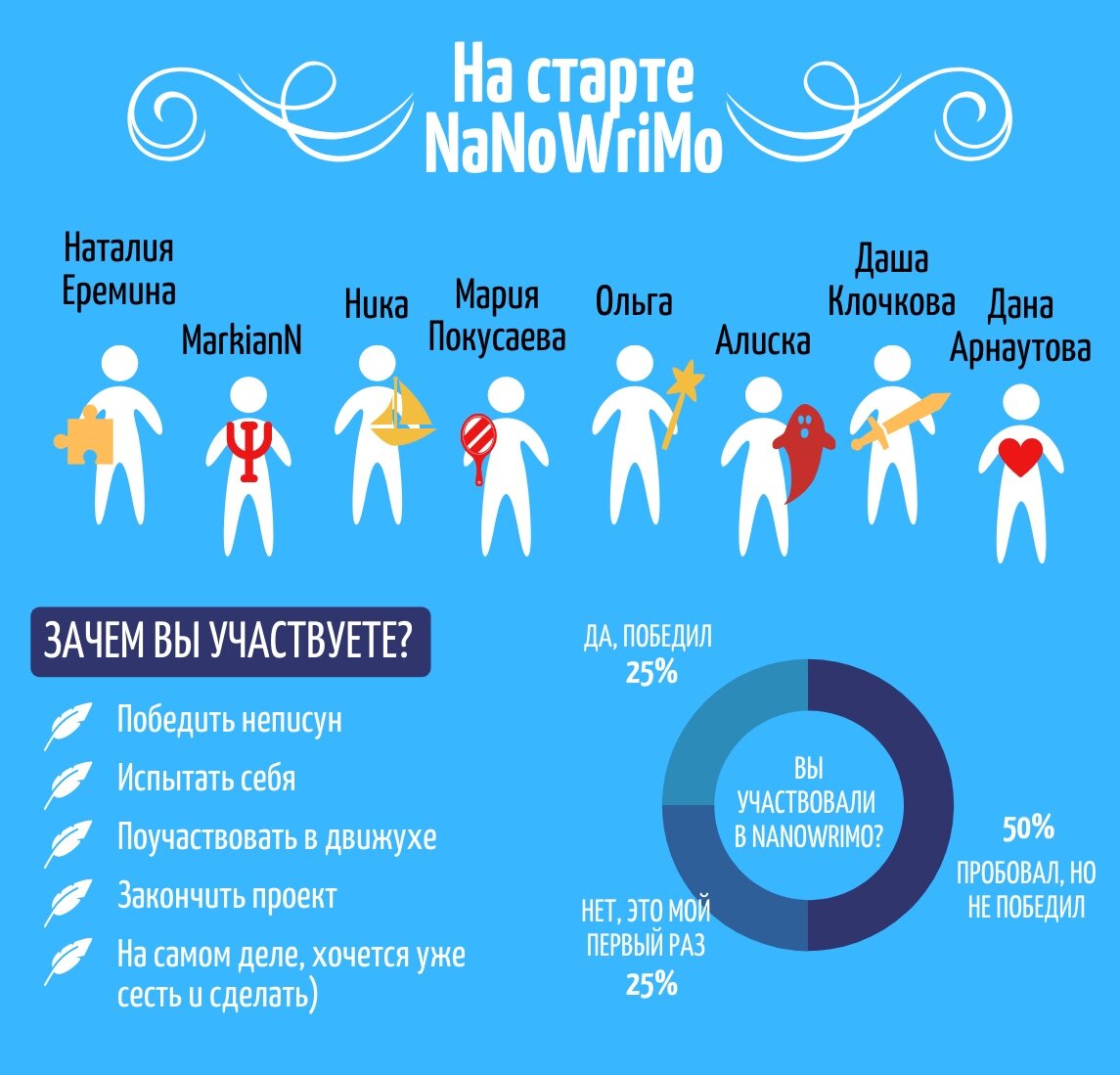Желаем всем удачи! Мы будем следить за их успехами, собирая статистику. #NaNoWriMo #литмаркет