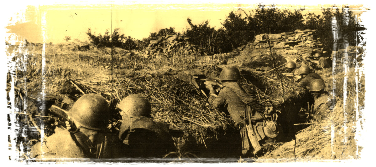 Вот уже были видны черные каски немцев. И их кричащие лица. Вот один пытается срочно перезарядить пулемёт, а другой ему помочь, но слишком поздно: справа и слева красноармейцы уже прыгают в траншею, и начинается рукопашный бой. Не успевшие зарядить MG-42 немцы падают сражённые очередью из ППШ Ивана.