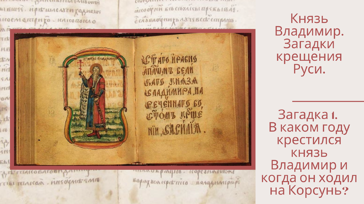 Крещение Руси и Князь Владимир. Загадка 1. В каком году крестился князь Владимир и когда он ходил на Корсунь?