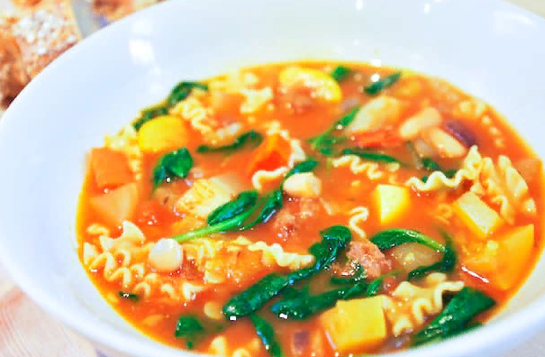 подготовка 10 минут варка 40 минут итого 50 минут Рассматривайте этот рецепт как руководство к действию. Суп превосходен в том виде, в котором он написан, но это прекрасная возможность использовать овощи, хранящиеся в холодильнике. Это блюдо можно есть сразу, и оно сохранится на ночь. Макароны могут стать мягче, но вкус супа улучшится. Примерно на 6 порций ВАМ ПОНАДОБЯТСЯ 2 столовые ложки оливкового масла экстра-класса 8 унций рассыпчатой острой или итальянской свиной колбасы, см. примечание 2 средние луковицы фенхеля, обрезанные и мелко нарезанные 1 средняя луковица, мелко нарезанная 3 средние моркови, очищенные и мелко нарезанные 3 стебля сельдерея, мелко нарезанные 3 зубчика чеснока, измельчить 2 средних цуккини или желтых летних кабачка, мелко нарезанных 1 (15-унций) банка помидоров, нарезанных кубиками, с соком 1 (15-унций) банка фасоли каннеллини (белая почечная фасоль) 8 чашек куриного бульона с низким содержанием натрия, см. как мы готовим куриный бульон 1 лавровый лист 3 веточ