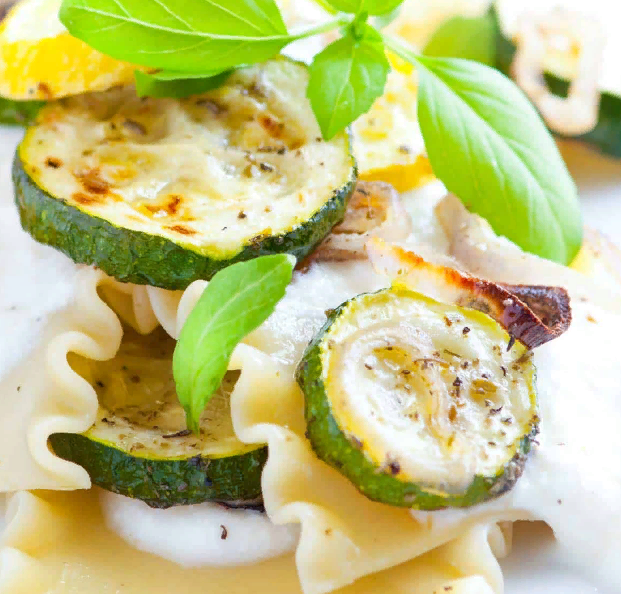 Подготовка 5 минутОтварить 15 минутИтого 20 минут Если вы любите лазанью, но у вас нет времени ждать, пока она испечется, приготовьте эту простую лазанью свободной формы с обжаренными цуккини и желтым сквошем. Вы также можете добавить жареные баклажаны, помидоры, грибы или даже вареную курицу или колбасу. На 4 порции ВАМ ПОНАДОБЯТСЯ 2 цуккини, нарезанные кружочками толщиной 1/4 дюйма 2 летних/желтых кабачка, нарезанных кружочками в 1/4 дюйма 1 лук-шалот или маленький желтый лук, тонко нарезанный 1 столовая ложка оливкового масла экстра-класса 1/2 чайной ложки итальянской приправы 8 сухих лапш для лазаньи, не разломанных 1 чашка нежирного сыра рикотта Цедра одного лимона Соль и свежемолотый черный перец Свежие листья базилика, измельченные РЕЦЕПТЫ ЖАРЕНЫЕ ОВОЩИ Разогрейте духовку до 425 градусов F. Выстелите лист для выпечки пергаментной бумагой или алюминиевой фольгой. Добавьте сквош на сковороду, затем пальцами разделите лук-шалот на кольца и добавьте на лист для выпечки. Перемешайте