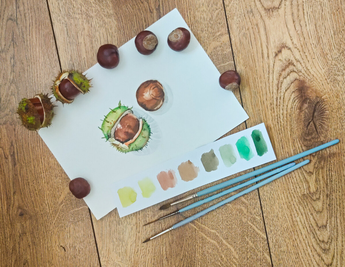 Как рисовать каштан акварелью. Простой поэтапный урок для начинающих