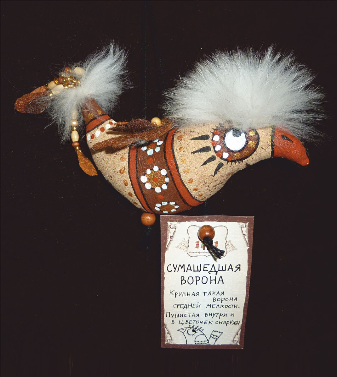 Надежда Шабанова А вы знаете, что делают вороны в теплое время года? Отдыхают, веселятся, летают по всем интересным местам. И выглядят чуть чудаковато. Но лучшего спутника для отдыха и не придумаешь. Только безбашенная, сумасшедшая ворона! Пушистая внутри, в цветочек снаружи. Ее можно повесить в машине, на дверцу шкафа в отеле, и даже дома она не даст вам заскучать… Как самостоятельно завести себе такого питомца? 1.Выкройку перевести на бязь, прострочить (оставив место для выворачивания). Вывернуть, набить холлофайбером. Зашить отверстие для набивки. 2.Грунтуем кофейным составом (250 мл горячей водя, 1 чайная ложка кофе, 1 чайная ложка корицы, 1 столовая ложка ПВА) и даем высохнуть. 3-11.Разрисовываем питомца акриловыми красками. Тут полет фантазии полный. Сумасшедшая ворона у каждого своя, даже если она при этом похожа на попугая. Я обычно раскрашиваю поэтапно, сначала все одним цветом, затем другим. В конце оформляю все тонкой черной линией и украшаю точками. 12.Из фетра