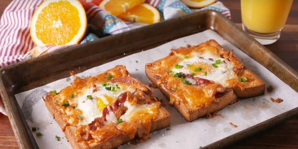 Запеченные в духовке гренки с сыром и яйцом готовы.
