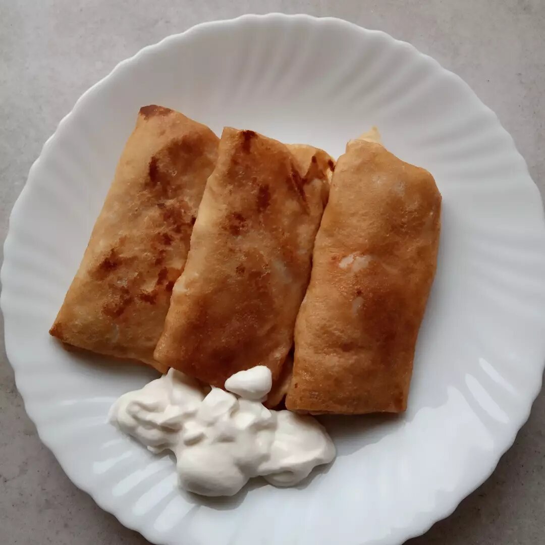 Блинчики из цельнозерновой муки, фаршированные творогом.