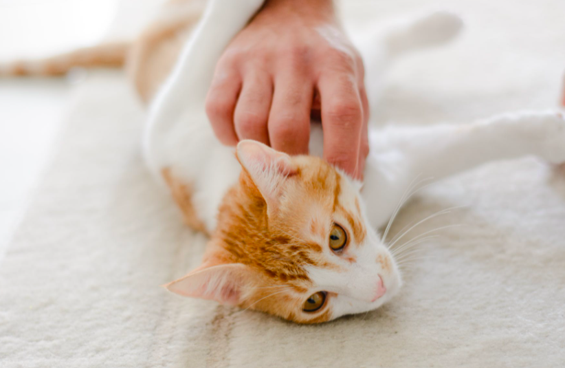 Шаг 3: Как только лапа кошки окажется на ладони владельца, можно открыть руку, чтобы животное получилось то, что хотело.