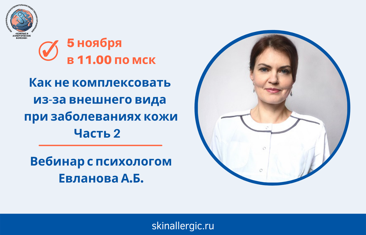 Тема вебинара: Как не комплексовать из-за внешнего вида при заболеваниях кожи. Часть 2.