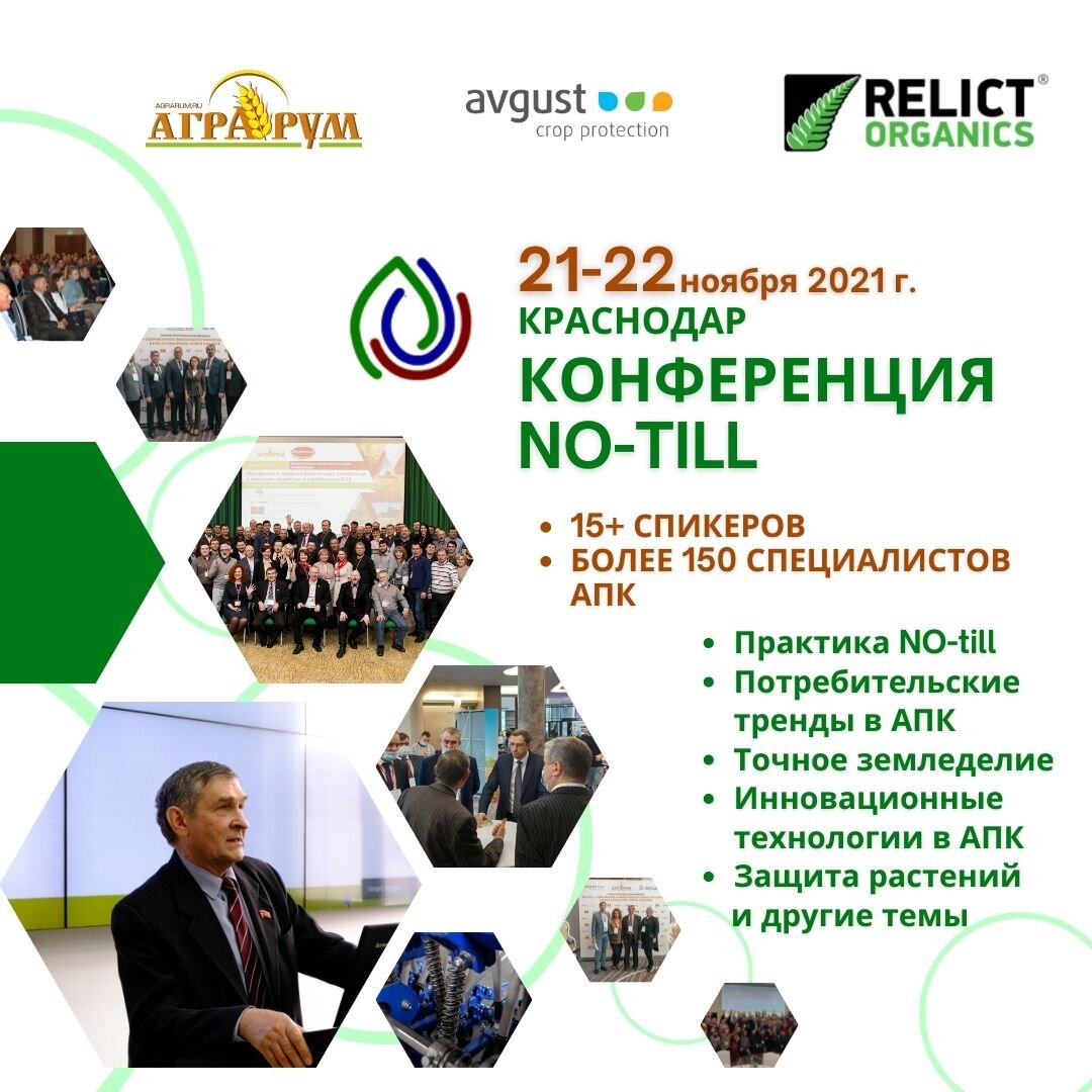 Аграрум приглашает стать участником пятой научно-практической конференции «No-till — современное и эффективное решение для аграриев. Наука и технология. Успехи и ошибки». Конференция будет проходить 21-22 ноября 2021 года бизнес-отеле Crowne Plaza Krasnodar (Краснодар). Спикерами конференции выступят практики-ученые, руководители и специалисты хозяйств из различных регионов России, в которых применяется технология прямого посева. Это позволит познакомиться с особенностями применения технологии в различных природно-климатических условиях, обсудить интересующие вопросы, увидеть ошибки и достижения, накопленные собственным опытом участников, получить новые смыслы для принятия стратегических решений в своем хозяйстве. Вы узнаете, как применение технологии прямого посева позволяет снизить расходы на сельхозработы, как отказ от традиционной вспашки улучшает состояние почв, как при помощи технологии прямого посева вводить в сельскохозяйственный оборот залежные земли и бросовые поля и экономит