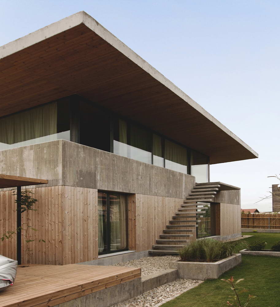 Двухэтажный летний домик на южном побережье Чёрного моря построен только из бетона и дерева. План дома повторяет длинную и узкую форму участка. Расположение здания на участке имеет наилучшую ориентацию по сторонам света, так что вид на дом может в полной мере насладиться этим расположением. Находясь примерно в 100 м от берега моря, он находится практически на «второй линии». Гостиная, кухня и столовая занимают одно и то же место на верхнем этаже, с застекленными стенами с трёх сторон, чтобы захватить самый красивый вид. Три спальни находятся на первом этаже, с прямым выходом на участок. Архитектура основана на простых минималистичных формах с простыми линиями и контролируемой ориентацией на вид на восток, где можно увидеть восход солнца и море. На западе из-за соседей в доме нет проёмов и окон, у него «слепой» фасад. Гостиная на верхнем этаже имеет прямой доступ по внешней лестнице в сад и к бассейну, без необходимости пересекать дом. Внутренняя лестница — это кратчайший путь к спаль