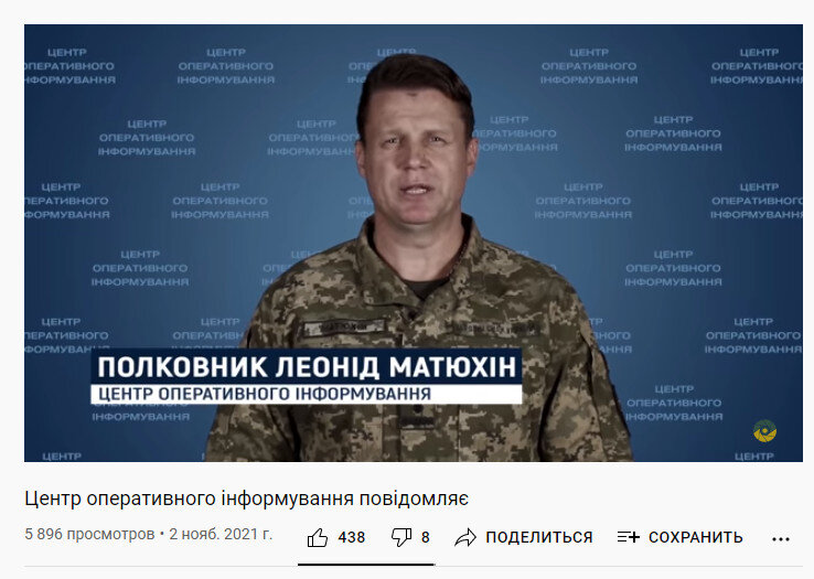 «В его состав входят войска 8-й, 20-й армий Южного и Западного военных округов, а также силы и средства Черноморского флота РФ. Кроме того, вблизи нашей границы базируются отдельные соединения и части 4-й, 6-й армий военно-воздушных сил и противовоздушной обороны воздушно-космических сил вооруженных сил Российской Федерации. На временно оккупированных территориях Донецкой и Луганской областей развернуты и действуют два армейских корпуса российских оккупационных войск».