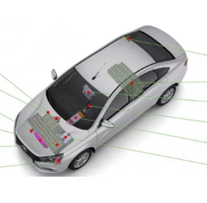 В структурную схему современного электромобиля входят следующие устройства: - зарядное устройство — преобразует переменное напряжение внешней сети в постоянное для заряда аккумуляторных батарей, тяговой и вспомогательной; - устройство защиты (блок реле и предохранителей) — состоит из выключателей, реле, предохранителей, которые включены меж- ду аккумуляторной батареей и остальной электрической схемой — потребителями. При возникновении неисправности цепь перемен- ного тока и аккумуляторы отключаются; - тяговая аккумуляторная батарея — обеспечивает энергией дви- гатель электромобиля; бортовой компьютер — контролирует состояние основных функциональных компонентов и бортовых систем электромобиля. При необходимости инициирует средства защиты; - дополнительный источник электроэнергии (обычно вспомога- тельная аккумуляторная батарея на 12 В) — обеспечивает работу осветительных приборов, панели приборов, стеклоподъемников, стеклоочистителей и т.д.; — система климат-контроля салона — состоит и