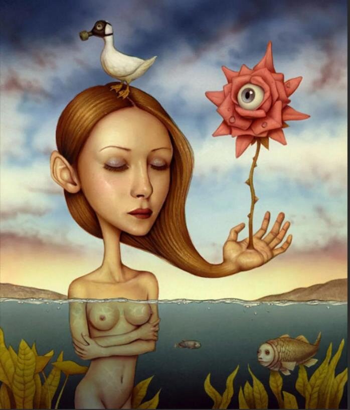 Наото Хаттори - известный и весьма необычный японский художник. Основной жанровой направленность художника является сюрреализм. Его работы отличаются тем, что в сюрреализм, к которому все мы привыкли, он добавляет немного традиционной японской живописи техники своей страны. И получаются из этой смеси сюрреалистические картины, балансирующие на грани прекрасного и ужасного, будто мы окунулись в психоделический мир. Всё началось с того, что маленький трёхлетний Наото начал рисовать огромные глаза. «Однажды, закрыв глаза, я увидел разноцветный глаз, похожий на мандалу, и он продолжал менять форму, как калейдоскоп. Я нарисовал сотни изображений глаз. Тогда я думал, что все это видят». - Говорит художник. Хаттори говорит, что это именно то, что он до сих пор видит в своем разуме. В творчестве художника есть так же портретная живопись со специфическим ему уклоном. Портреты завораживающие и даже прекрасны, но при этом, порой они тревожны и таят в себе внутренний кошмар. Встречаются в его