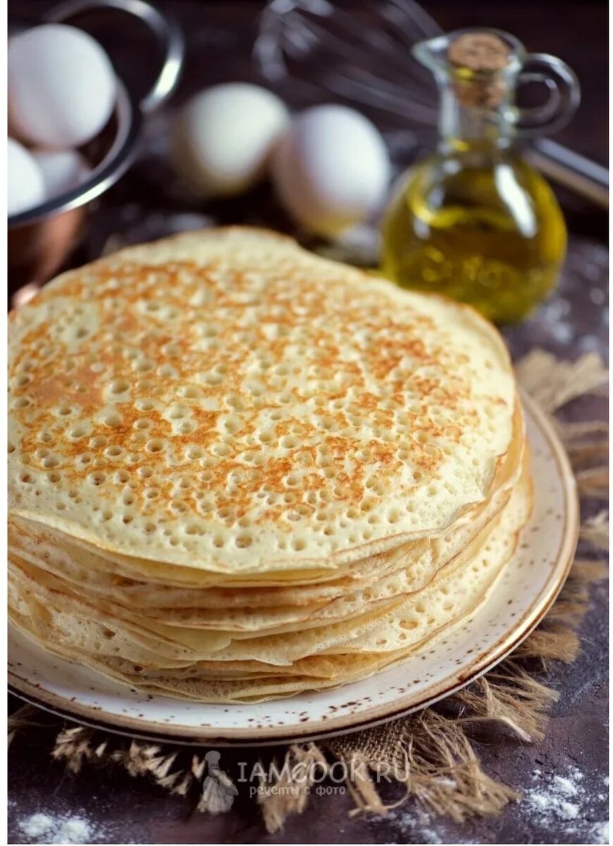 Как испечь тонкие блины с дырочками? Никаких секретов нет, желаемая дырчатость достигается очень просто – нужно смазывать небольшим количеством растительного масла сковороду перед каждой заливкой теста. Тогда готовые изделия приобретают красивый рисунок, дырочки и румяность. Ингредиенты: Молоко – 1 л; Мука – 320 г; Куриные яйца – 2 шт.; Подсолнечное масло – 4 ст. л.; Сахар – 2-3 ст. л.; Соль – ½ ч. л.; Сода – ½ ч. л. Способ приготовления: 1. Подогреваем молоко в кастрюле. Берем глубокую тарелку и разбиваем в неё яйца. 2. Туда же высыпаем сахар и соль. Взбиваем. 3. Перемешиваем, предварительно добавив растительное масло. Вливаем сюда же приблизительно одну треть теплого молока. 4. Слегка перемешав, порциями вводим муку. Выливаем оставшееся молоко в два приема. В конце добавляем соду. Оставляем на полчаса, чтобы набухла клейковина. 5. Нагретую сковороду смазываем любым жиром. Обжариваем блинчики до готовности с двух сторон. 6. Готовые изделия складываем стопочкой на плоскую тарелку.