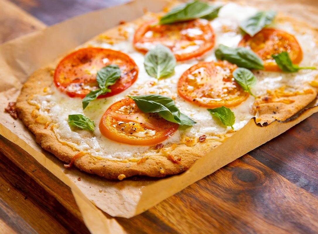 Описание Очень простой и быстрый рецепт домашней мини-пиццы в кето стиле. Для основы используем миндальную муку и Пармезан! Идеальное сочетание вкуса и лучшие ингредиенты для тонкой, хрустящей, классической основы! Готовим сразу две небольшие пиццы) Ингредиенты Для приготовления рецепта "Быстрая мини-пицца" Вам понадобится: Миндальная мука - 120 г Сыр Пармезан - 75 г Орегано, чеснок (порошок), соль и перец - по вкусу Яйцо - 2 шт. Оливковое масло - 3 ст. ложки Сыр Моцарелла - 100 г Помидор - 1 шт. Свежий Базилик - по вкусу Способ приготовления Шаг 1 Смешайте муку, Пармезан и специи в миске. Смешайте яйца, масло и специи и перелейте в сухие ингредиенты. Замесите тесто, скатайте в шар и уберите в холодильник минимум на 15 минут. Шаг 2 Разделите тесто на две части, переложите на застеленный пергаментом противень и выпекайте основу около 7-10 минут. в предварительно разогретой до 200°C духовке пока края не станут румяными. Шаг 3 Посыпьте основу Моцареллой, положите сверху ломтики помидо