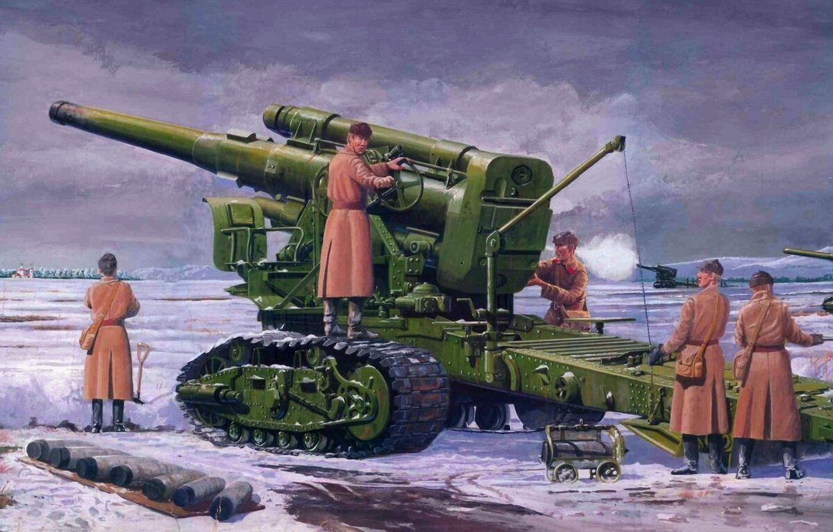 Перед войной разрабатывались 356-мм пушка ТП-1 и 500-мм гаубица ТГ-1 на железнодорожном транспортере. Но их так и не построили, железнодорожные пушки были лишь на вооружении флота.