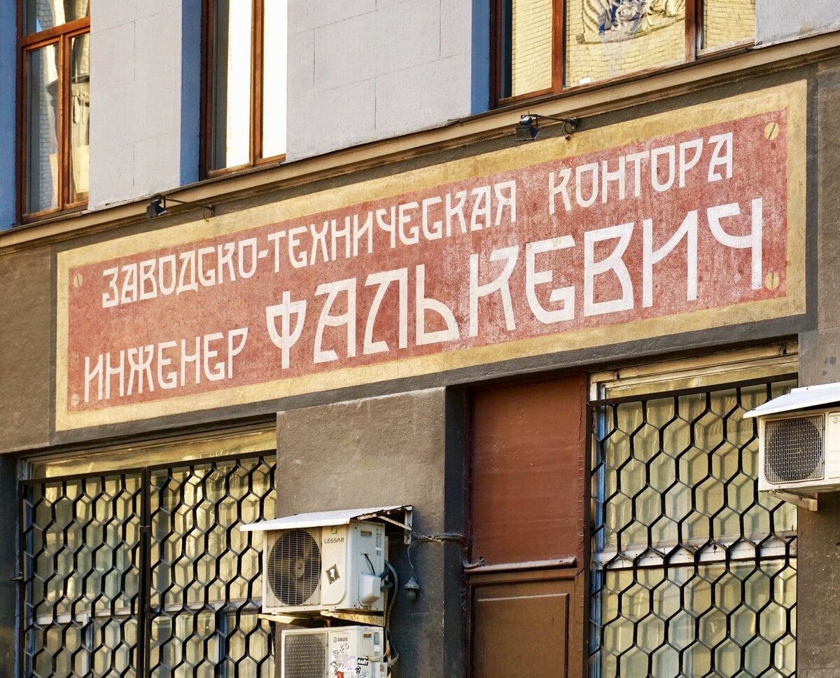 Несколько лет назад в Кривоколенном переулке под слоем краски была обнаружена вывеска технической конторы инженера Фалькевича. Как и многие другие старинные вывески, она реставрировалась специалистами команды «Вспомнить всё» на пожертвованные простыми москвичами деньги. Известно, что в начале XX века в этом здании работал инженер Самуил Фалькевич. После окончания учёбы в Московском техническом училище (ныне известном как МГТУ имени Баумана), он устроился работать на Кислородный завод Ивана Мохова. Всего лишь через два года Фалькевич стал совладельцем предприятия и постоянным членом Московского отделения Императорского технического общества. Там он познакомился с инженером Яковом Древицким: человеком, страстно увлечённым новым творением технического прогресса - автомобилем, организатором собственной автошколы. Вместе они открыли представительство немецкого автозавода «Norddeutsche Automobilwerke», при котором работала техническая контора Фалькевича - фактически автосервис, занимавшийся ремонтом и обслуживанием машин. С началом Первой Мировой войны поставки немецких автомобилей прекратились и контора была перепрофилирована на нужды кислородного завода, кроме того в ней проводились изыскания по вопросам использования торфа в качестве топлива для электростанций. Увидеть старинную вывеску можно по адресу: Кривоколенный переулок, д. 14.