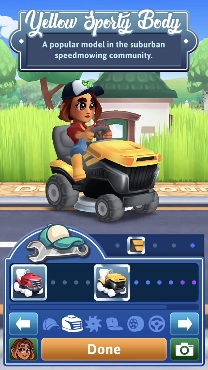 Просто косишь, даже награды нет? В награду за покос получи ящик с инструментом. В ящике одежда для водителя и детали для газонокосилки, которые меняют внешность. Открывается ящик за рубины или за часы реального времени.