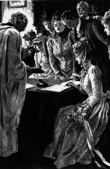 Подписание свидетельства о браке. Рисунок из журнала «Кэсселлс», 1890