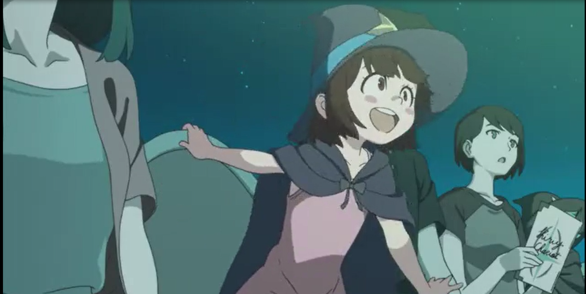 "Не забывай и верь всем сердцем в магию" Маленькая Акко\Анко в нетерпении ждёт выступления, но вот звёзды превратились в посох, а потом все увидели и ведьму его держащую. Это волшебство навсегда изменило жизнь Акко, она тоже всем своим существом захотела стать ведьмой. На уроках по истории магии Акко Кагари спит и получает нагоняй от ведьмы-преподавательницы. После ещё подружка Сюзи, как настоящая коварная ведьма, прикалывается и у Акко вырастает длинный нос. "Я хочу стать крутой ведьмой, как Сияющая Ракета" Акко и не подозревала, что среди потомственных ведьм Сияющая Ракета не популярна и стараться быть как она это моветон. Во время первого урока полёта на метле всем стало ясно, что Акко абсолютно безнадёжна в этом деле. Это странно ведь мётлы всегда слушаются ведьм, но Акко это не смущает она готова учиться чему-нибудь другому. Урок по поиску сокровищ в лабиринте и здесь "вечный двигатель" Акко в итоге спас всех, а меланхоличная Сьюзи отравит монстра любой величины. Всезнайка Диана