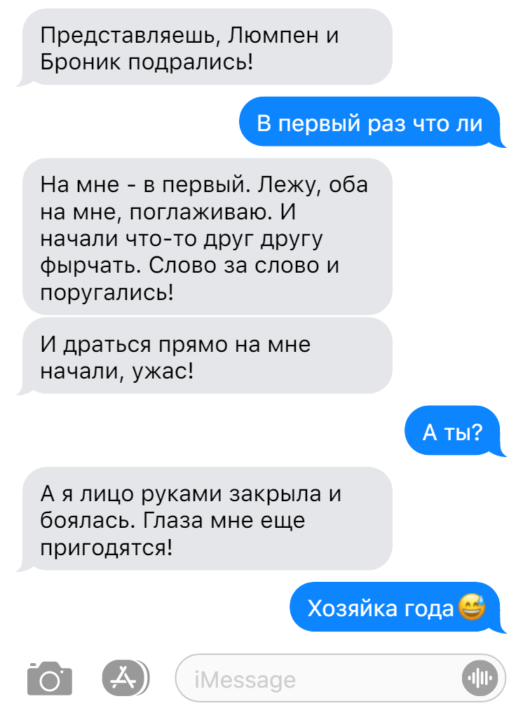 Еще одна переписка про битву титанов, ой, то есть котов. Иногда всё вокруг вовлекается в конфликт.