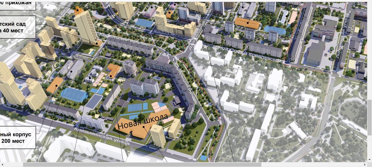часть 2. Инфраструктура. Одним из преимуществ ЖК "Дмитровский парк" застройщик ГК ПИК называет развитую инфраструктуру района. Это так, но с одной ремаркой: инфраструктура на самом деле развита ... на дату строительства основной части домов, то есть, по состоянию на начало 80-х годов, когда еще не было и речи ни о закрытии бывшего филиала госпиталя, ни о строительстве на его месте огромного жилого комплекса. Как было озвучено на публичных слушаниях "Инфраструктура для ЖК будет предусмотрена при проектировании кварталов реновации". Действительно, примерно в километре от ЖК в районе Клязьминской,30 планируется строительство новой школы. Для строительства Центра образования необходимо снести 6 домов, включенных в программу реновации. Большая часть домов, на месте которых планируется новая школа, включены во 2-ю очередь переселения, на 2025-2028 годы. При этом 2 дома включены в 3-ю очередь переселения на 2025-2029 годы. Соответственно, строительство новой школы может начаться не ранее 2029