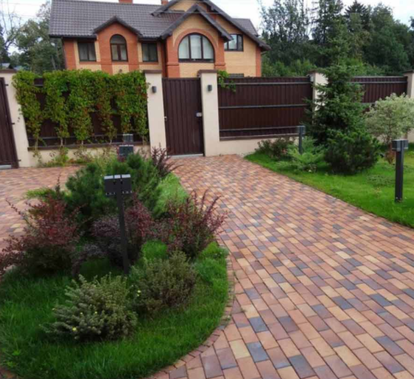 Декоративные элементы размещают вдоль всего забора, отталкиваясь от дороги к дому и оставшейся после планировки въезда для машин