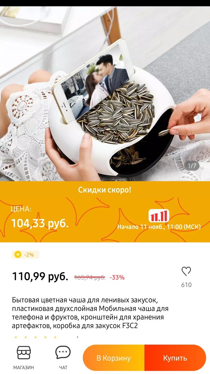 Статья, для любителей погрызть, что нибудь перед телевизором📺 А вы знали,что с 11 ноября, на AliExpress начнётся огромная распродажа и очень хорошие скидки🤑 Так вот,какую интересную нашла я штуку! Очень удобная баночка, для семечек,еще и с подставкой для телефона. Теперь ваш пол будет чистый,от кожуры. Чтоб погрызть семечки,не нужно обставляться тарелками вокруг себя.🍽Взял одну и сиди, отдыхай,наслаждайся 😊 И очень приятная цена! Успей заказать 🧡 AliExpress 11.11