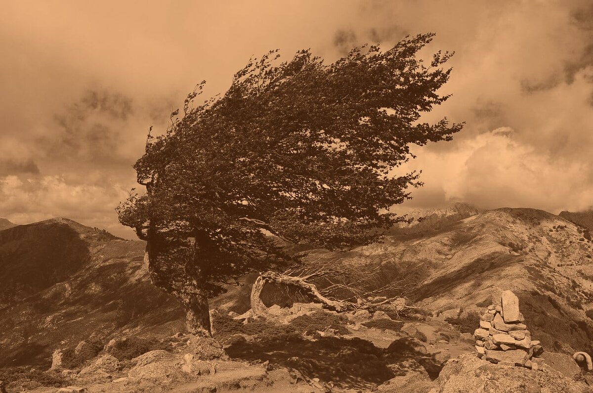 Утром порывистый ветер трепал кроны деревьев. Высокие стройные кипарисы сгибались под шквалистыми рывками. Вольный ветер затихал на секунду и шумно дул вновь, ускоряя полет белых барашков по голубому небу. Поток свежего воздуха обдувал лицо приятной прохладой, кутаясь в плед, я неторопливо потягивала горячий кофе на балконе. Серые горы властно возвышалось над крышами домов утопая в голубом небе. Одинокие кусты на склонах, словно былинки в поле, прижимались к лысым вершинам. Подобно птице, старая газета порхала по пустынной улице. Появились две девушки. Натянув капюшоны, они шли, куда их гнал ветер. Увлеченно рассказывая что-то подруге, одна из них размахивала целлофановым пакетом. Они спорили и что-то доказывали друг другу. Внезапно резкий порыв ветра выхватил кулек из рук, надул, как парашют, подхватил играючи и понес за собой. Девчонки бросились догонять беглеца, а он порхал, кружась и дразня своих хозяек. Тёплый ветер будто заигрывал с ними! Скинув капюшоны, девчонки задорно прыг