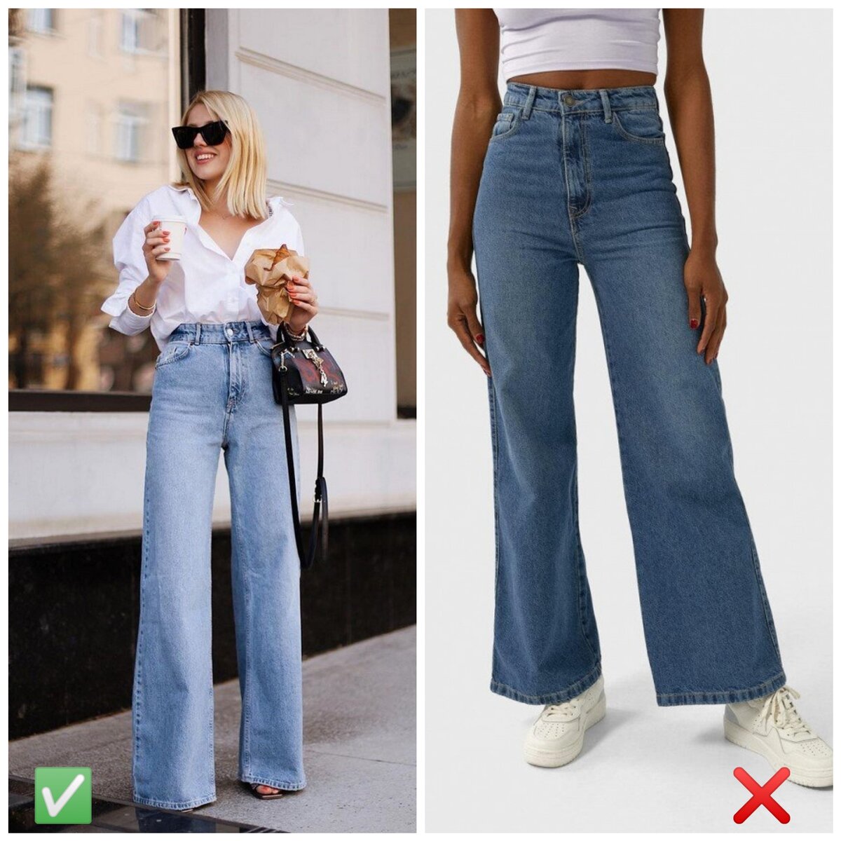 Брюки из джинсовой ткани — незаменимый предмет одежды. Они универсальны, практичны, выглядят стильно и модно. Их носят представители любых возрастов, и каждый гордится своей покупкой. Сейчас существует множество видов и способов их носки. Чтобы не выглядеть смешно и нелепо следует особое внимание уделить длине изделия. Джинсы клеш Они делают фигуру изящнее и подчёркивает женственность. Расклешенный покрой визуально увеличивает длину ног. Длину такого фасона следует подбирать под обувь. Если представительница прекрасного пола большую часть времени проводит на каблуках, то и джинсы должны закрывать его или подошву полностью. Если сочетать клёш с плоской обувью, то штанина должна доходить до пола. Скини - зауженные джинсы Несмотря на особенности женского тела, такие модели могут доходить до лодыжки или полностью закрывать пятку. Слишком короткие визуально урежут рост. Джинсы мом С джинсами мом та же история: лучше выбирать длину до косточки или чуть выше или ниже. Слишком короткие виз