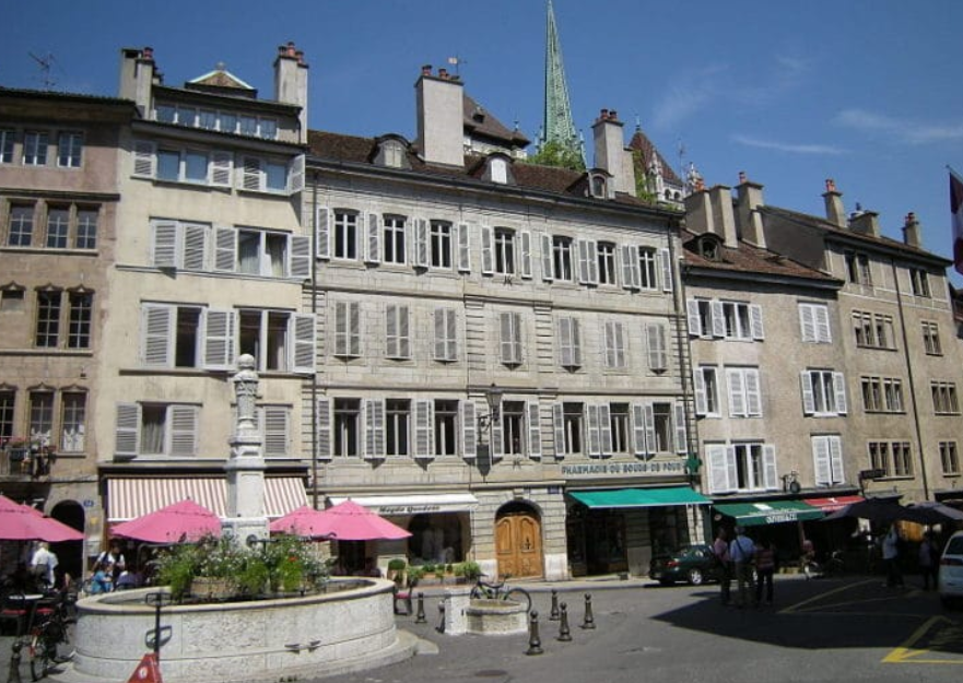 Площадь Бург-де-Фур на левом берегу реки Рона в исторической части Женевы